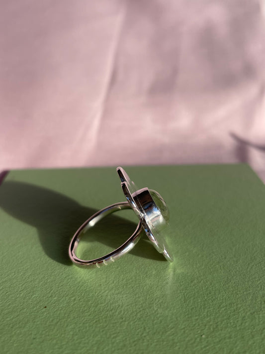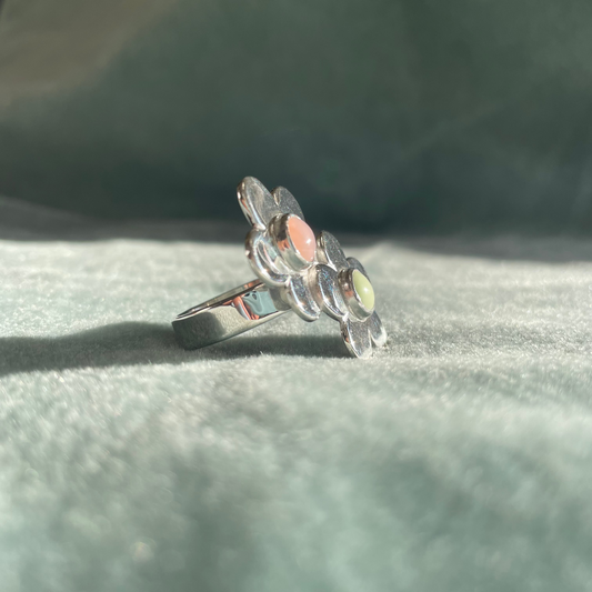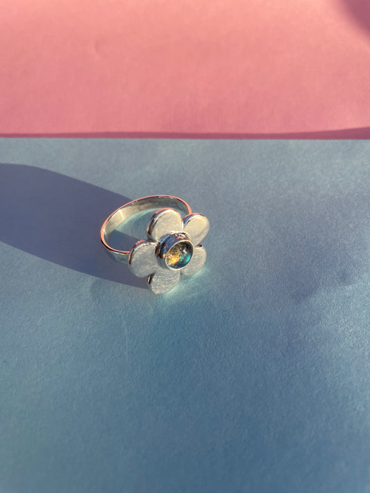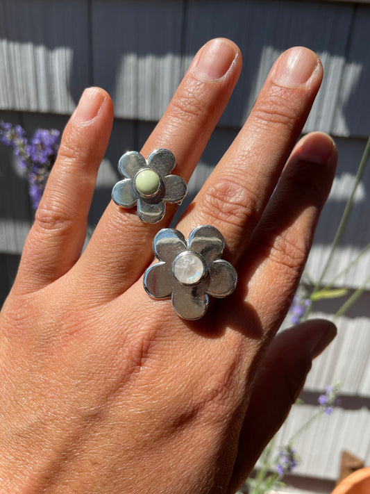 Daisy Ring- Classic 5 Petal with Rainbow Moonstone
