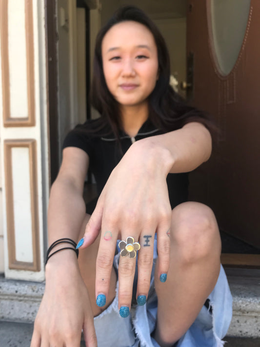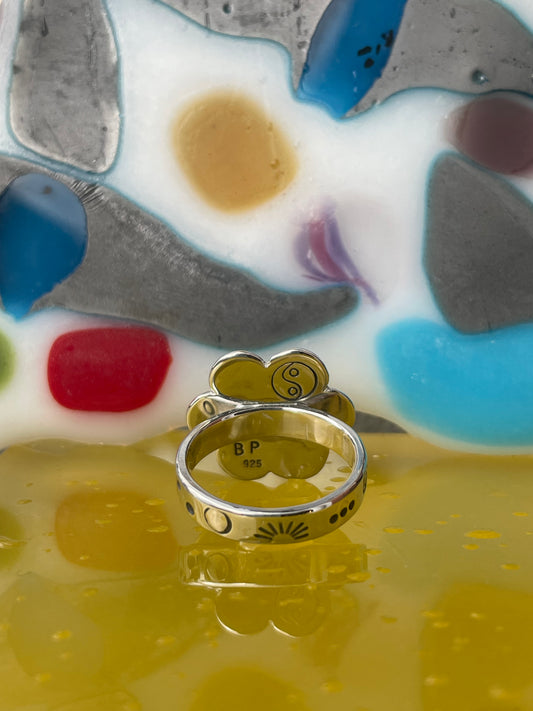 Daisy Ring- Classis 6 petal inlay Yin Yang