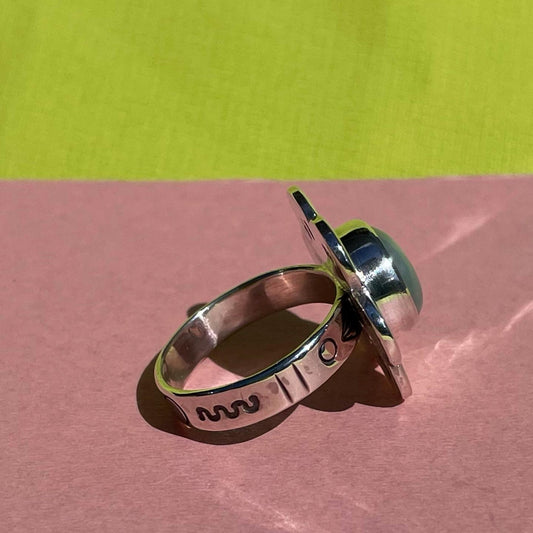 Daisy Ring- Medium 6 Petal Tourmalated Prehnite