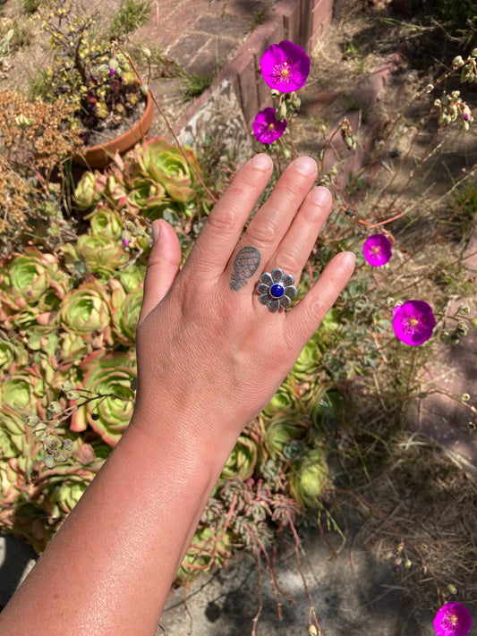 Daisy Ring- Classic 8 Petal with Lapis Lazuli