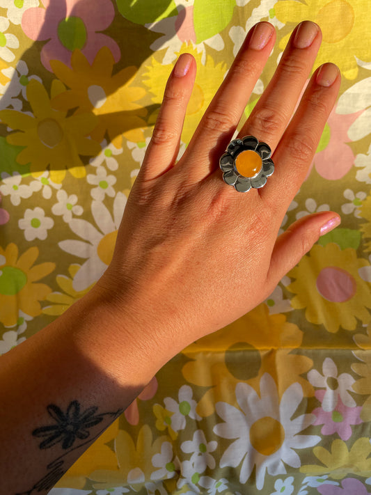 Daisy Ring- Classic 6 Petal Lemon Jasper